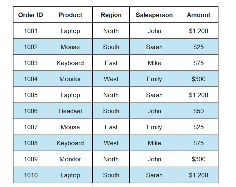 By shading every other row, you make your data instantly readable and professional.