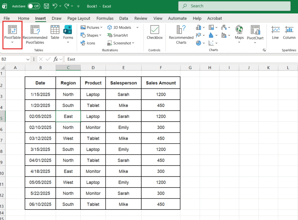 Step 2: Insert the Pivot Table
