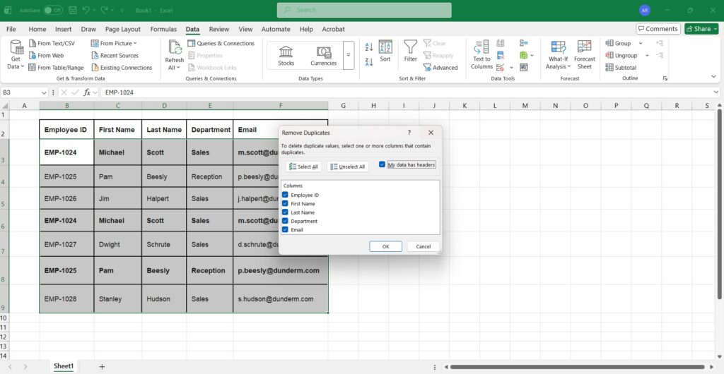 Method 1: The “Remove Duplicates” Button (Easiest)